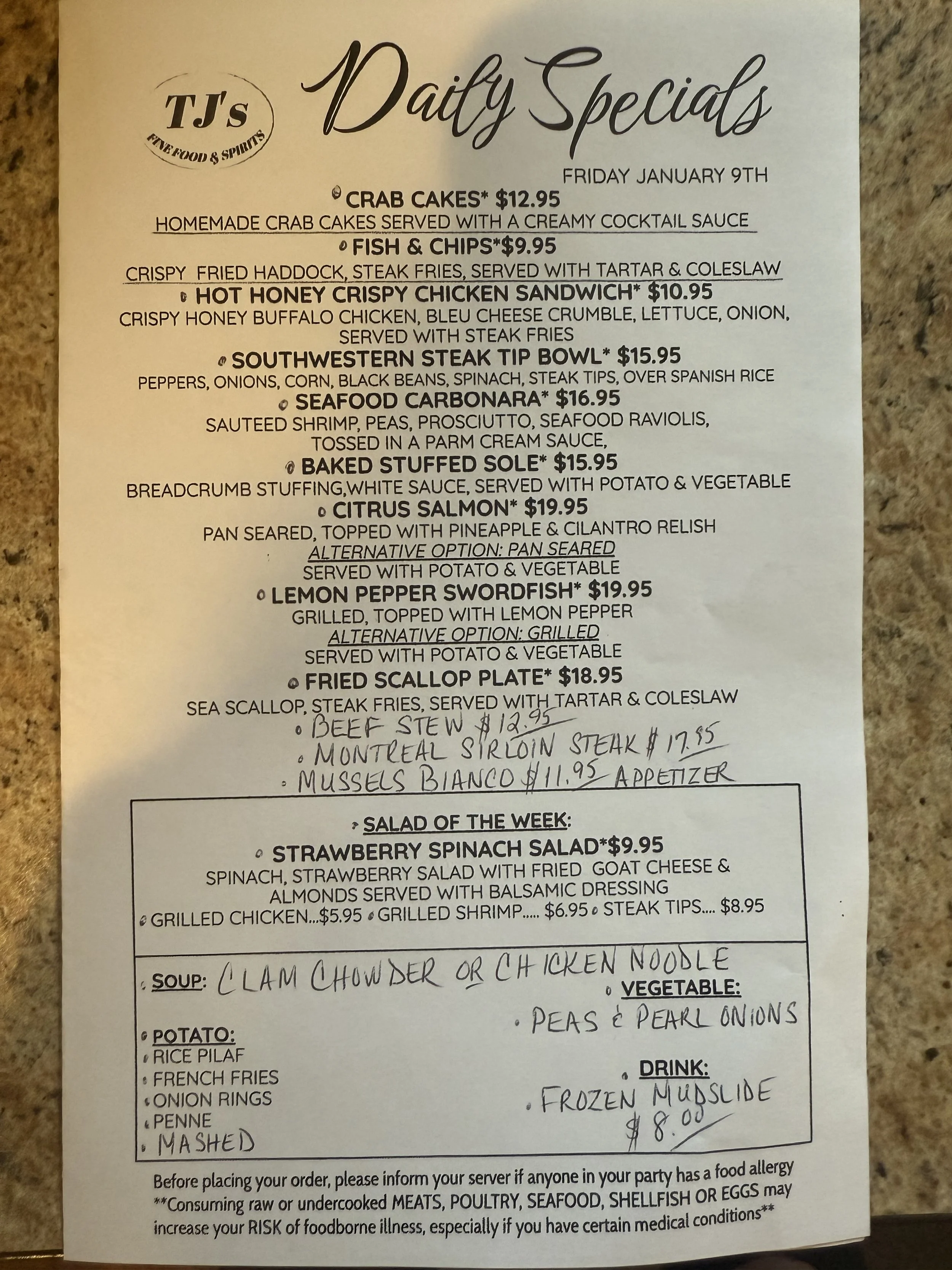 Daily Specials: Friday, January 9