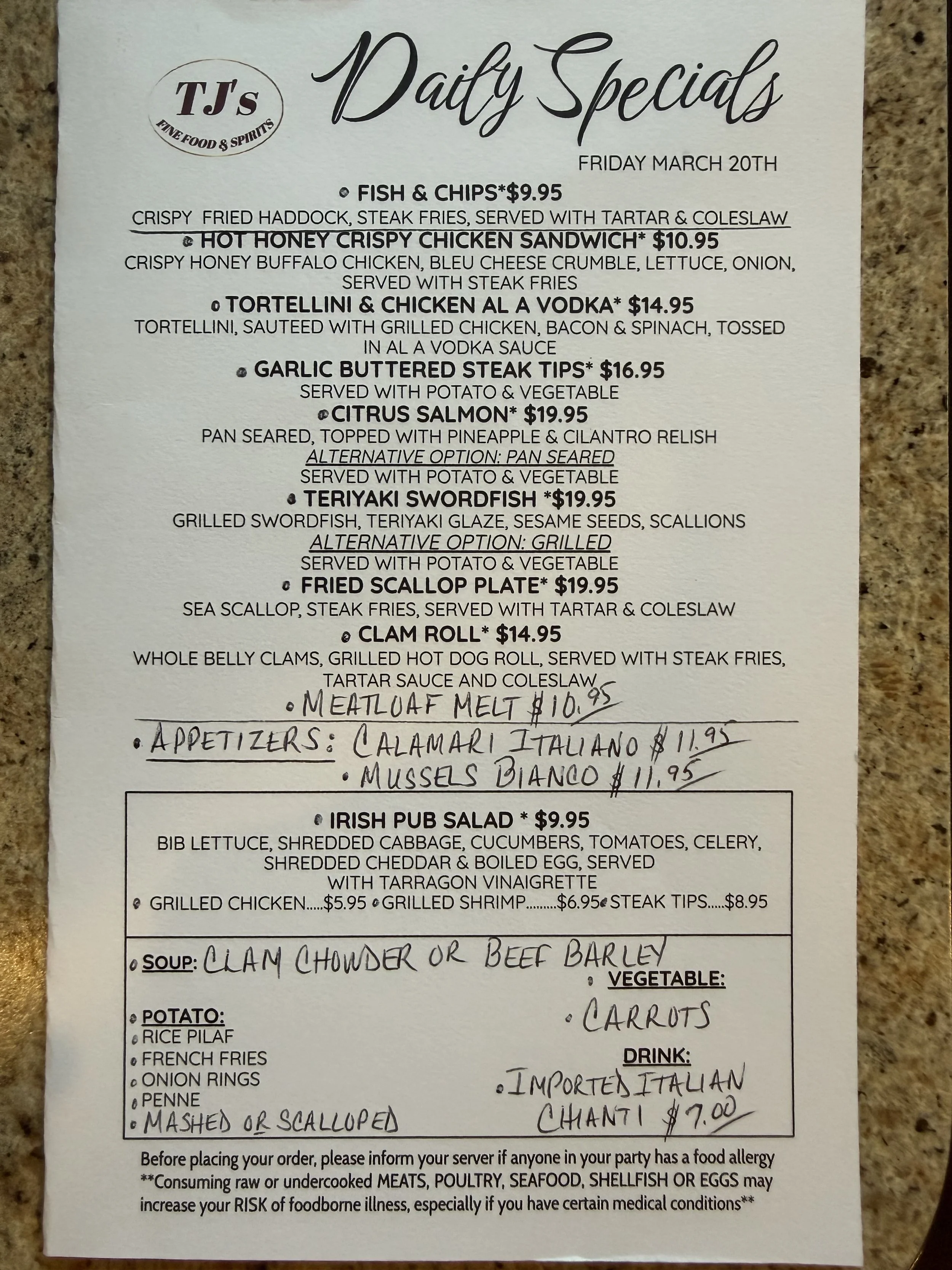 Daily Specials: Friday, March 20