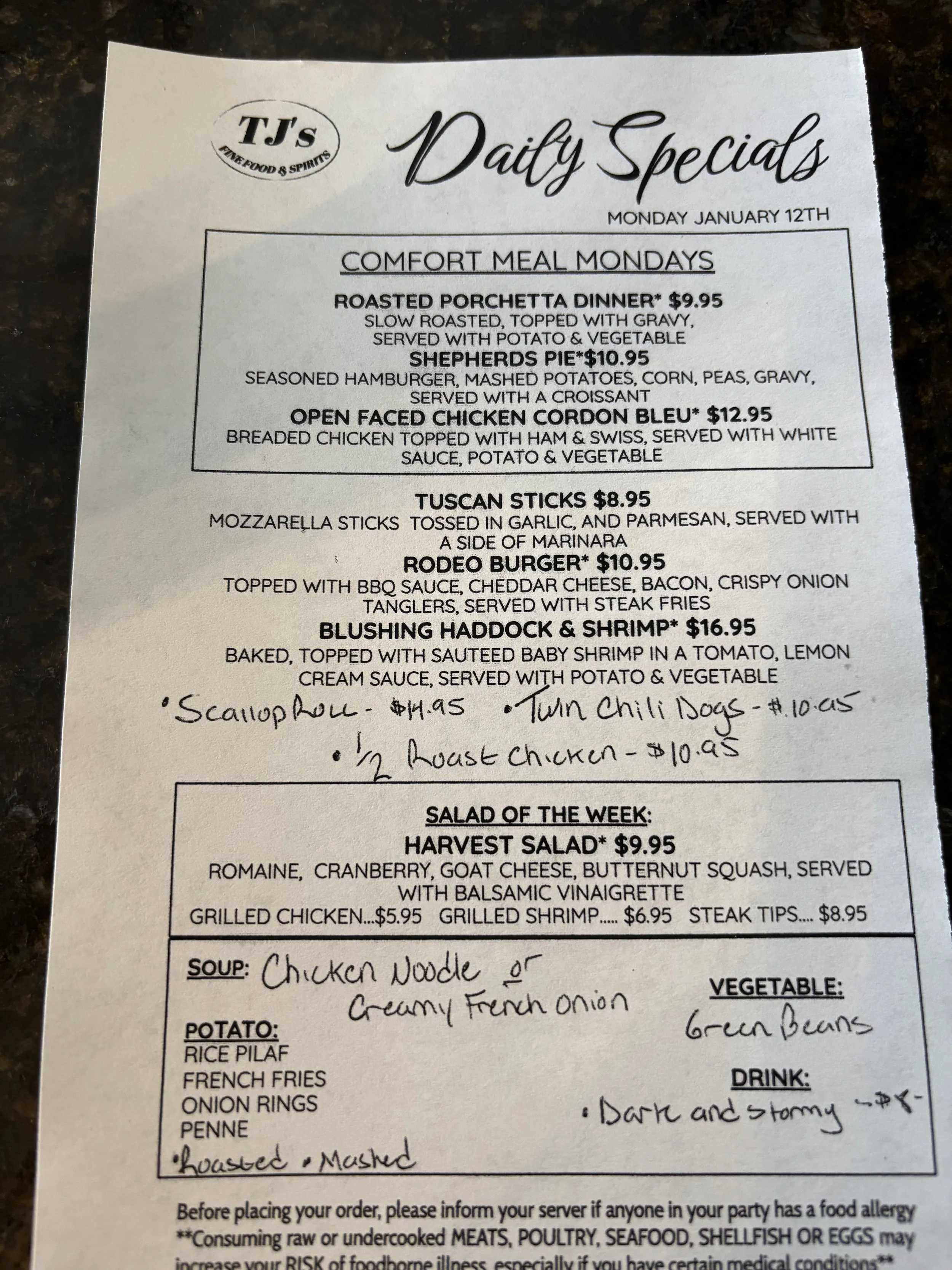 Daily Specials: Monday, January 12
