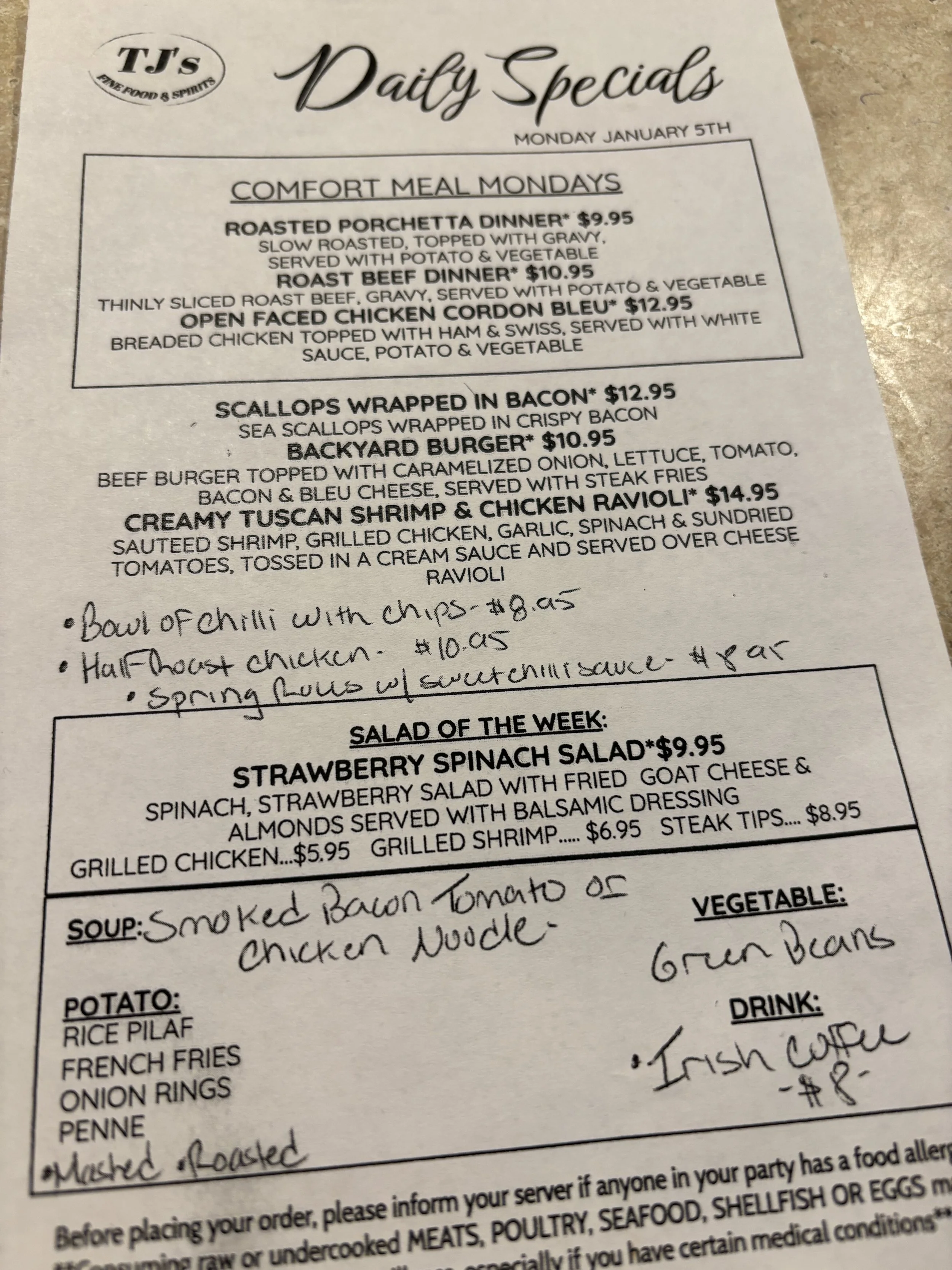 Daily Specials: Monday, January 5
