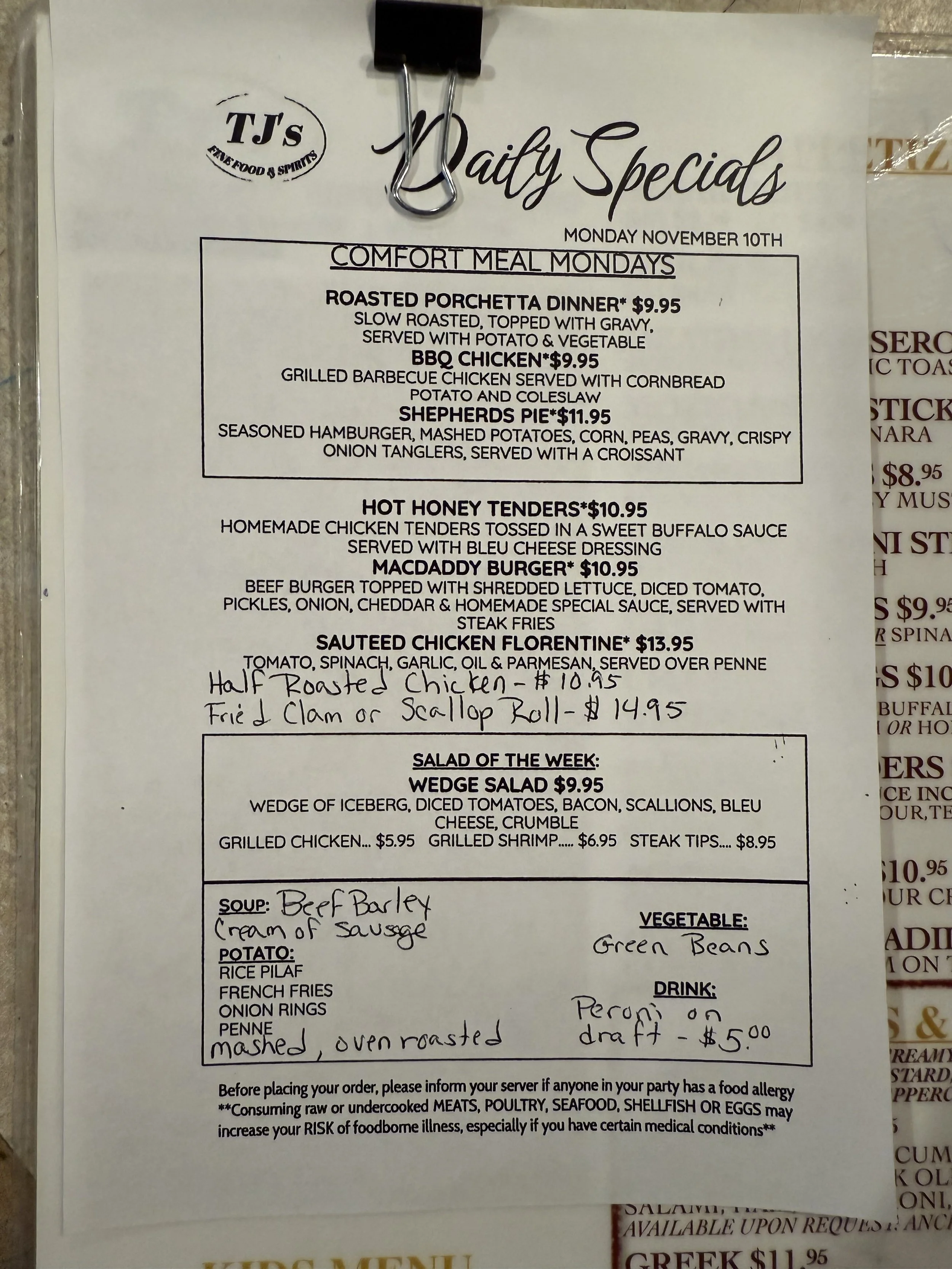 Daily Specials: Monday, November 10
