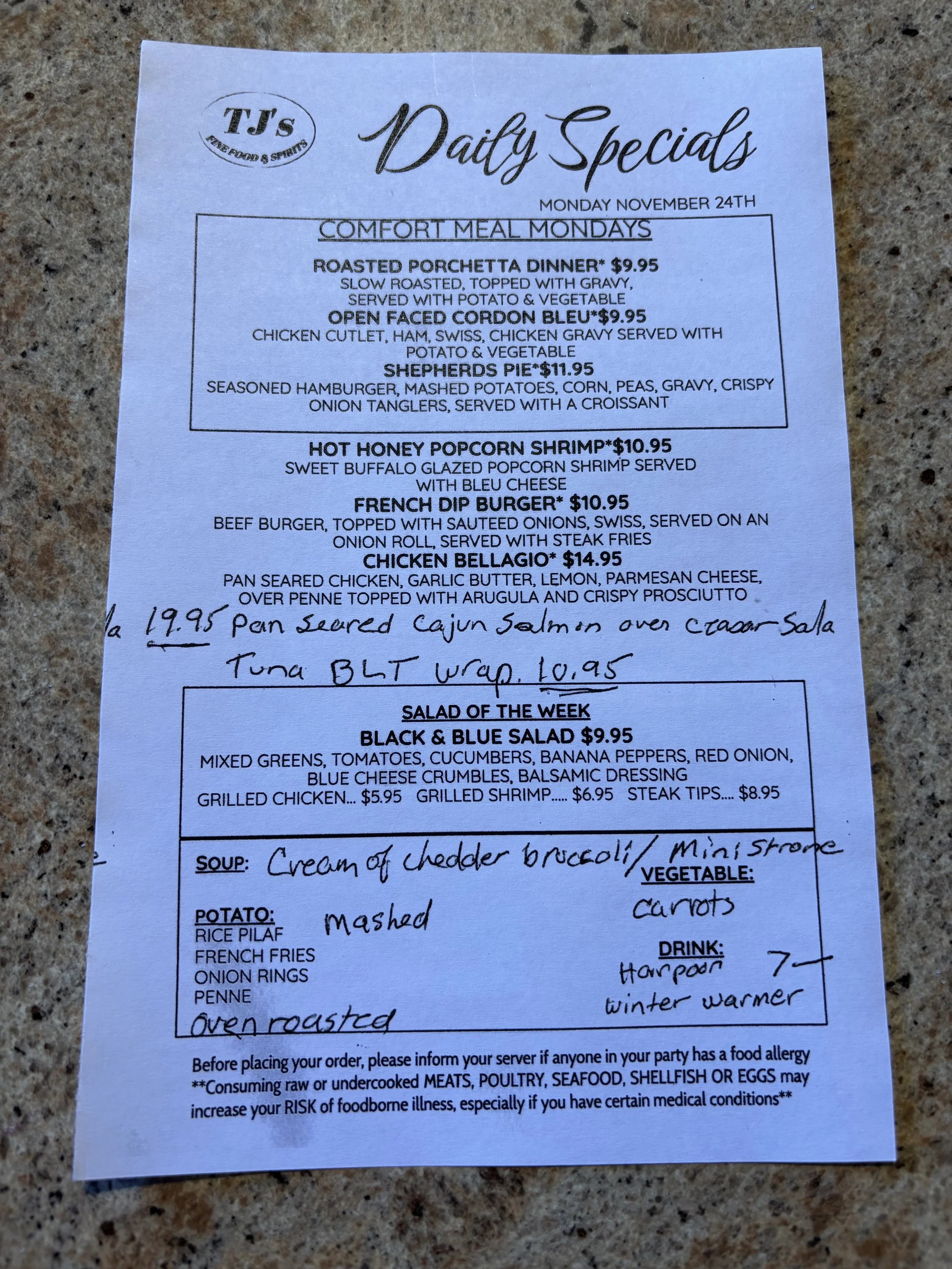 Daily Specials: Monday, November 24