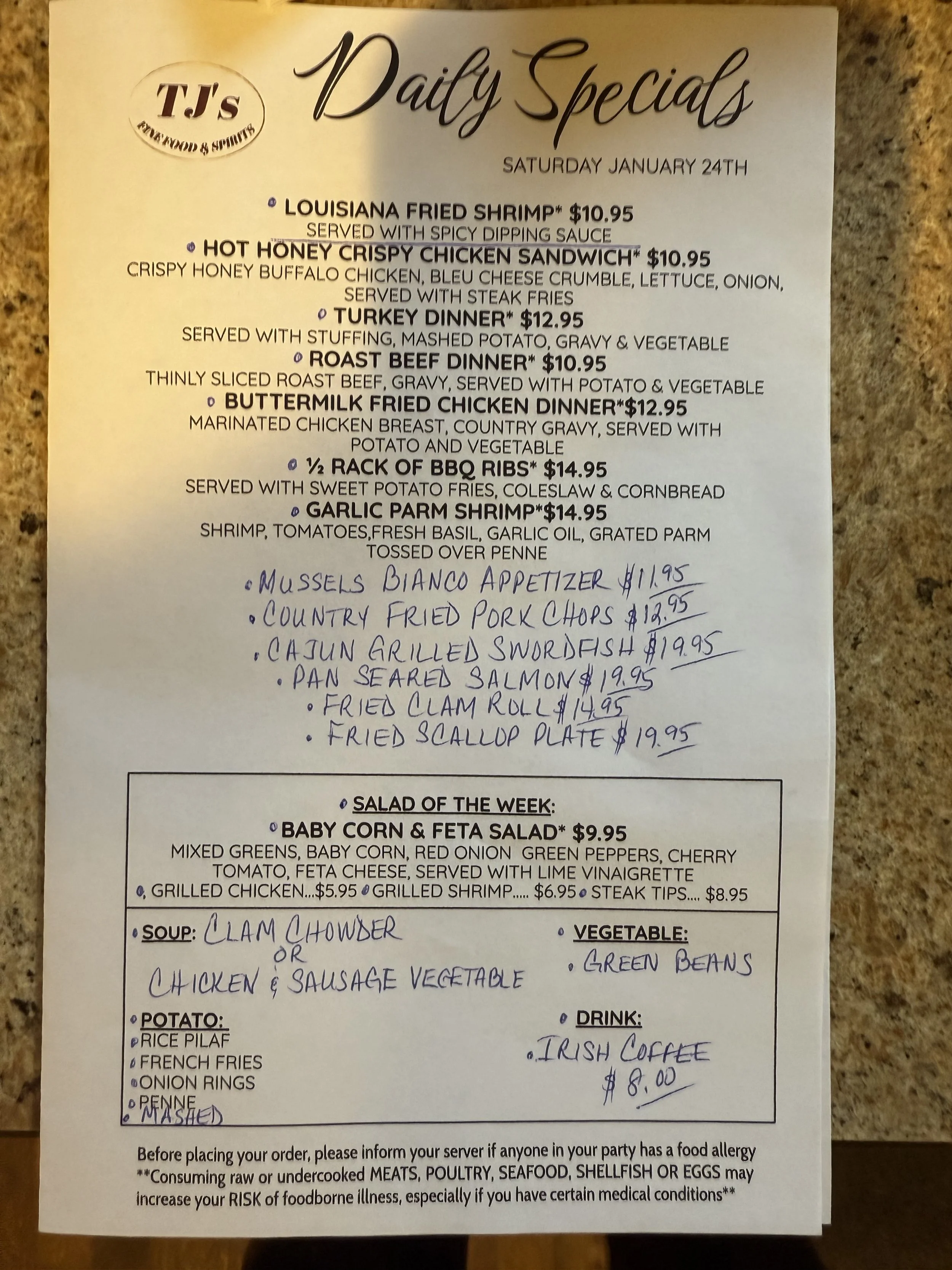 Daily Specials: Saturday, January 24