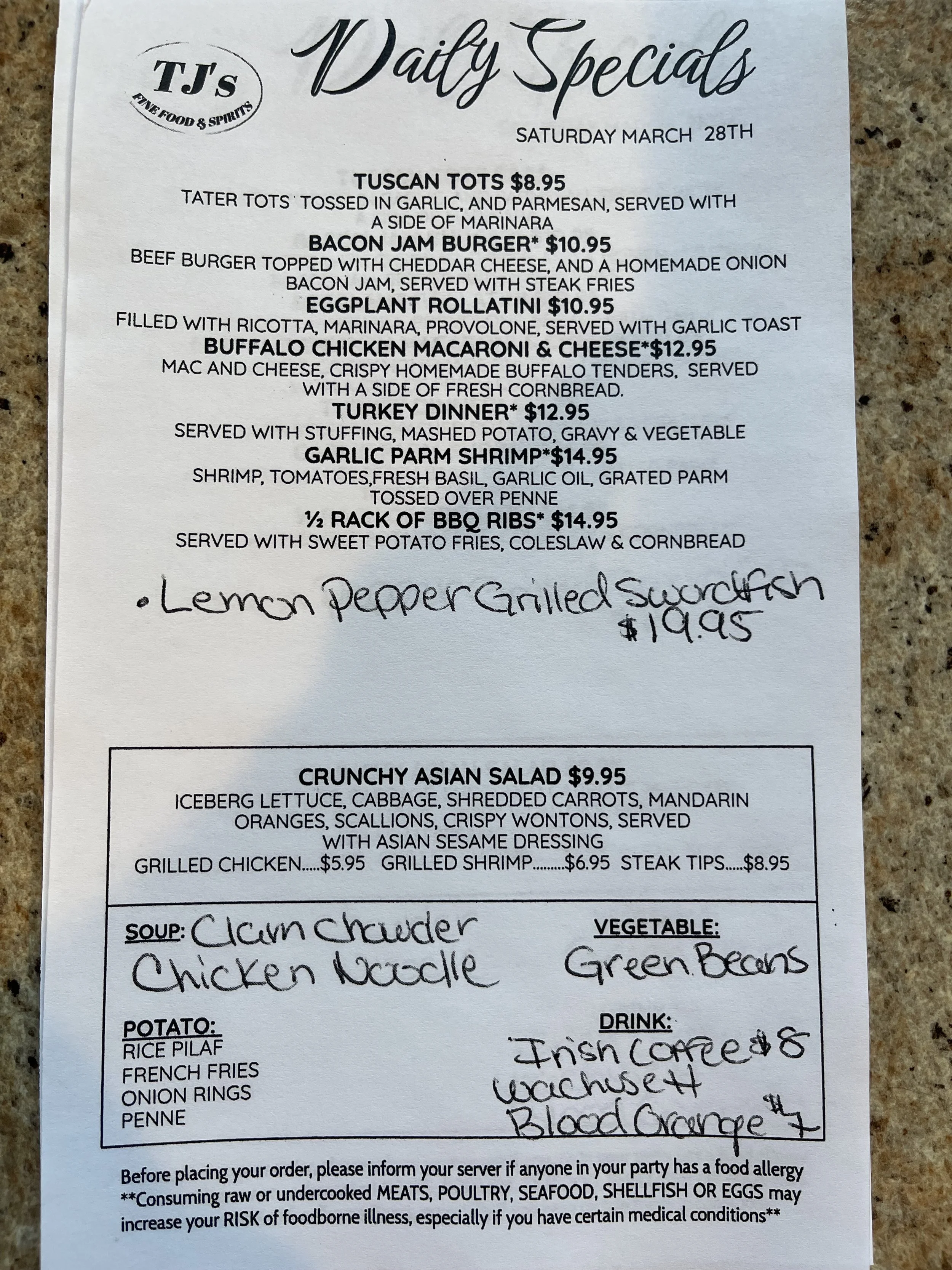 Daily Specials: Saturday, March 28