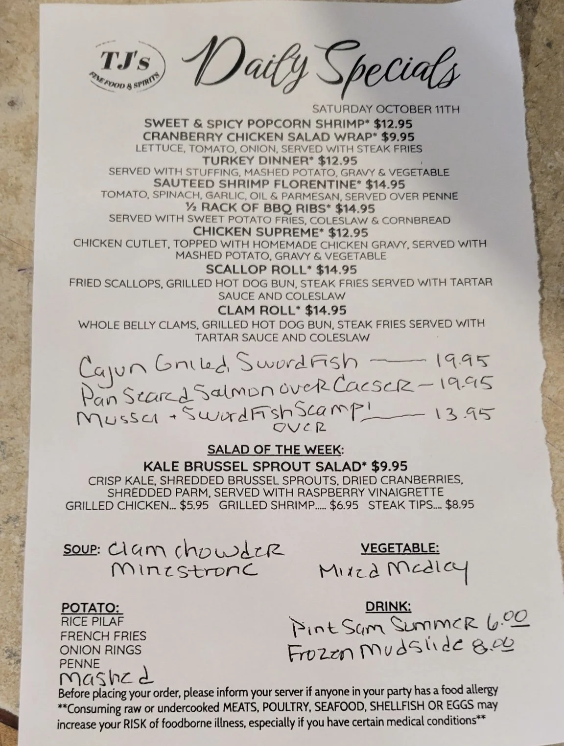 Daily Specials: Saturday, October 11