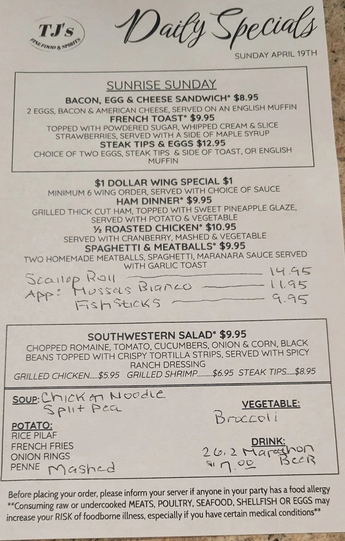 Daily Specials: Sunday, April 19