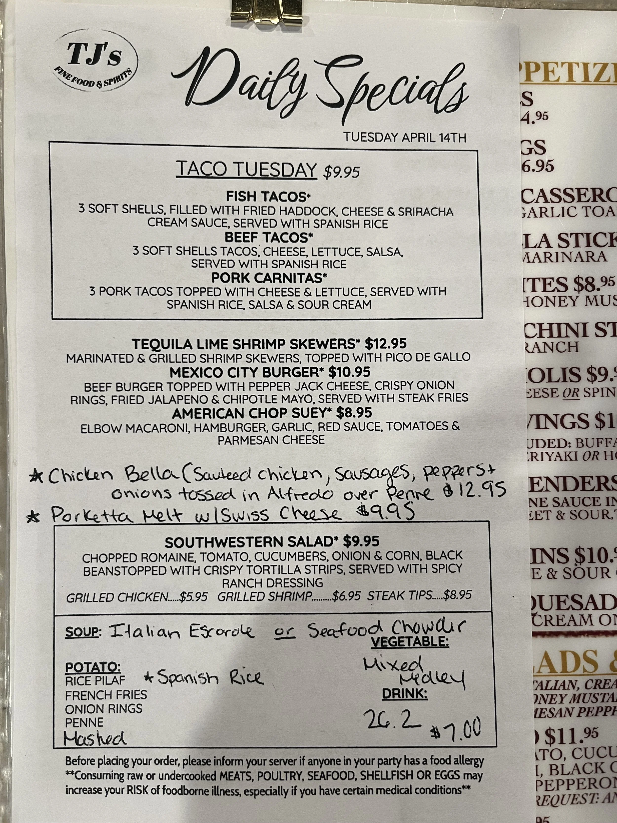 Daily Specials: Tuesday, April 14