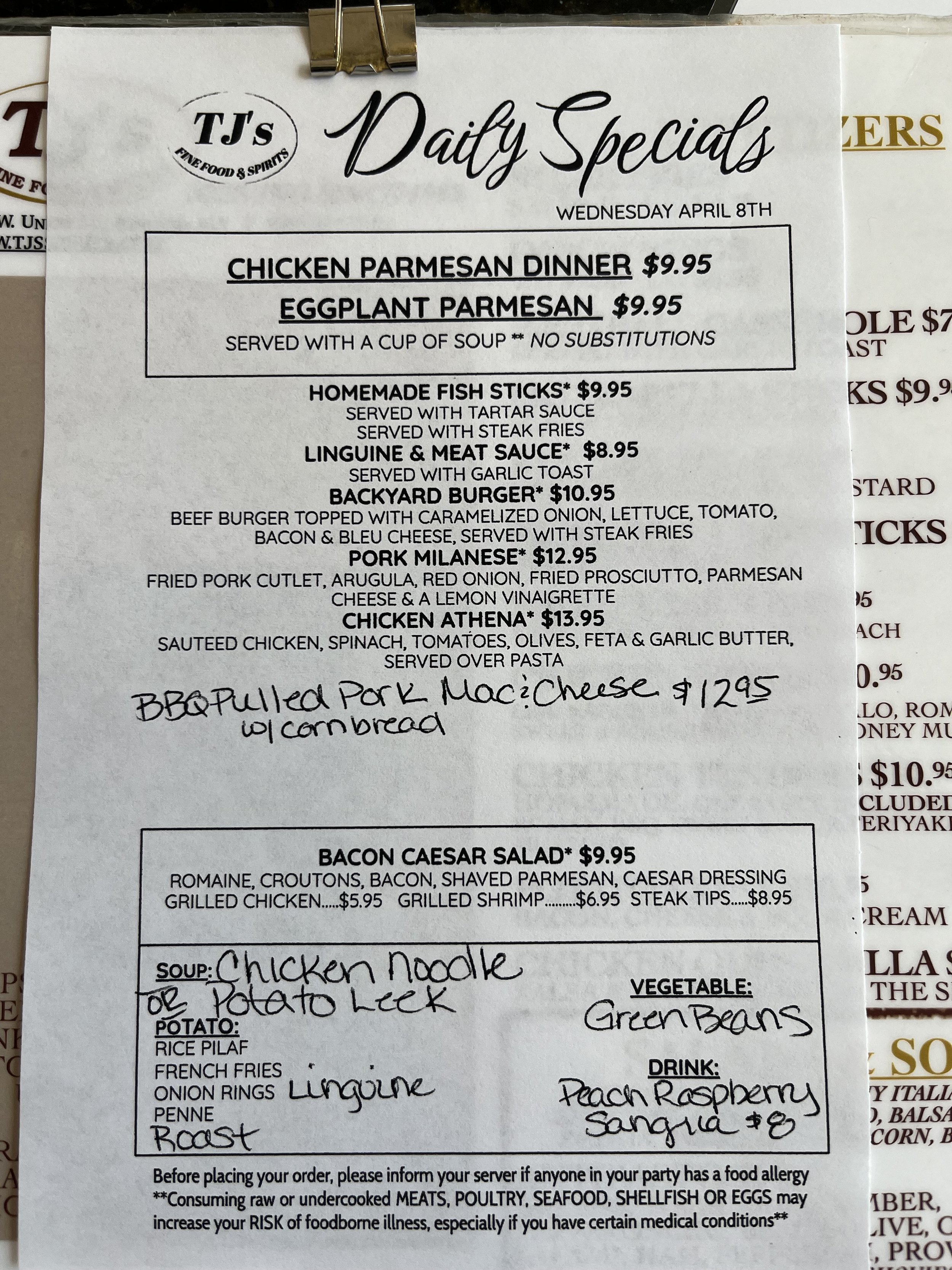 Daily Specials: Wednesday, April 8