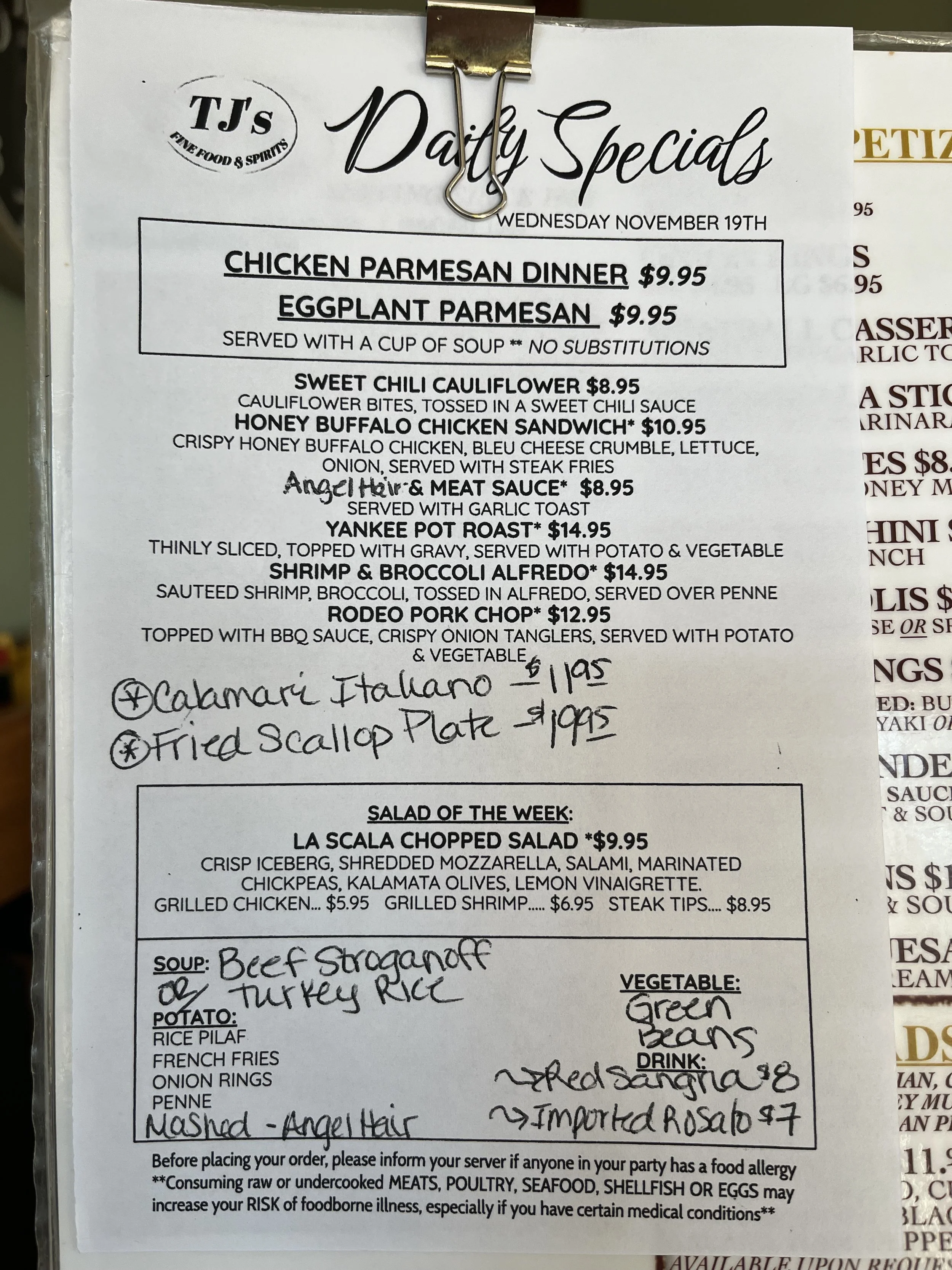 Daily Specials: Wednesday, November 19